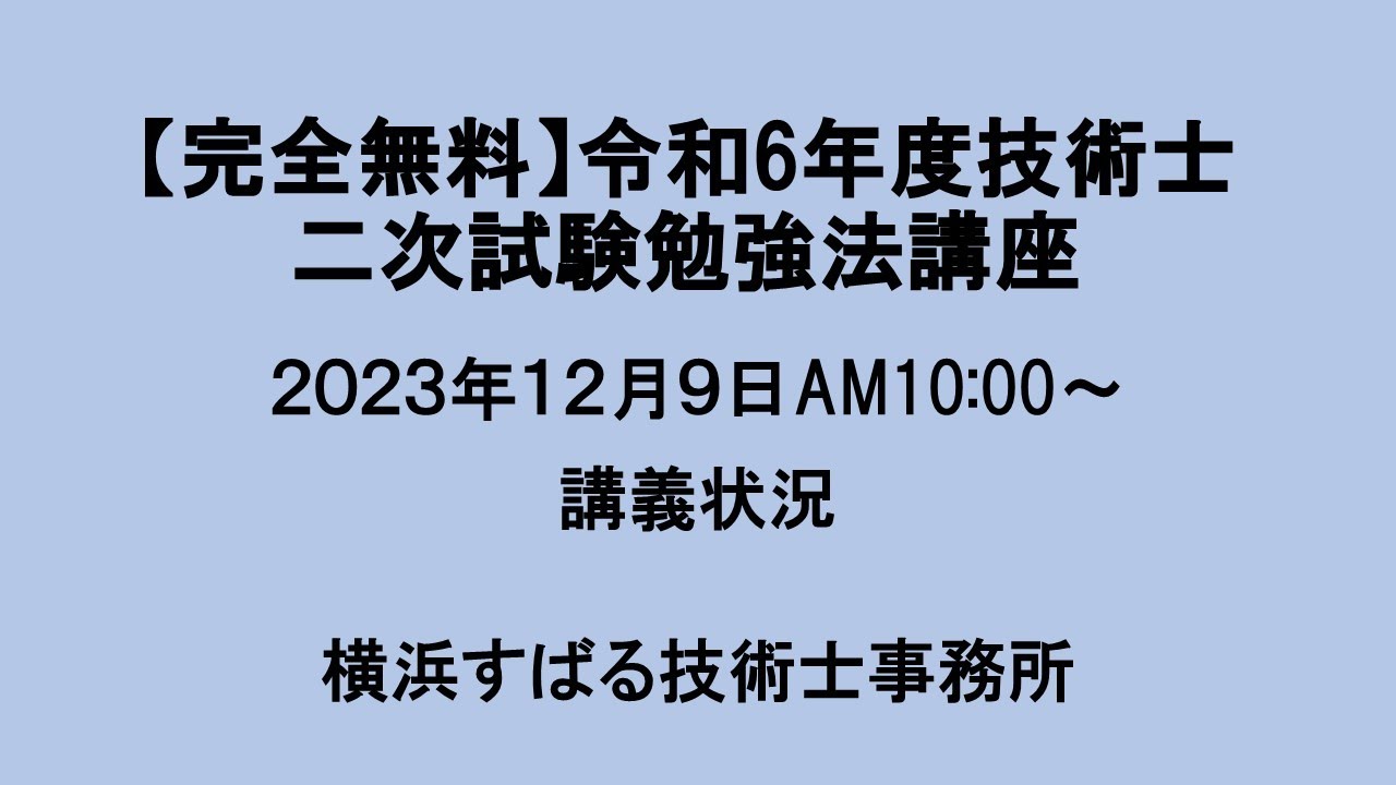 令和6年度技術士二次試験を受験予定者に対して無料でZoom講義を行います。